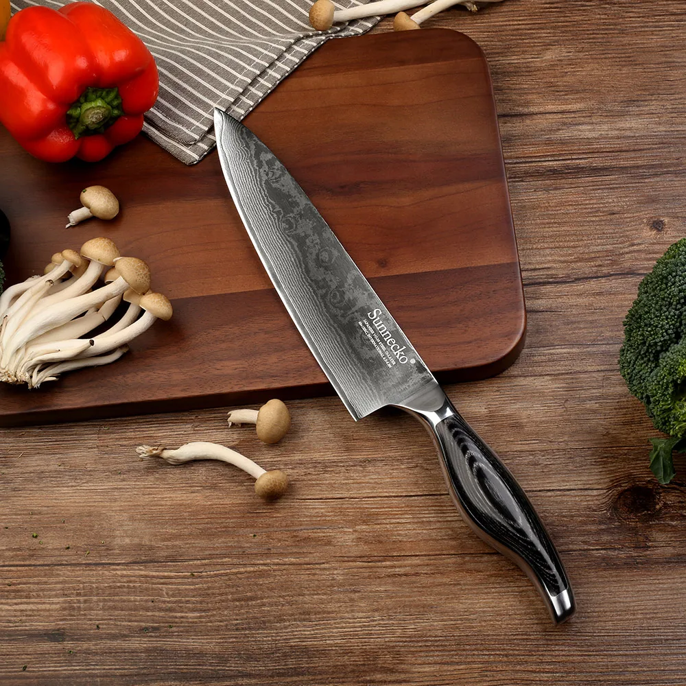 Japanese Damascus Kitchen Knives : Japanese Damascus Steel Gyutou Chef Knife - Knifewarehouse / Nowadays, theappearance of damascus steel is what most blacksmiths are trying to emulate.. Make life easier and more comfortable best knife set gifts for professionals chefs knives sets customer ratings by feature The japan's latest cladding technology has made it possible to sandwich and layer almost any different materials. In a nutshell, there is a thin layer of hard, brittle steel in the core which does the cutting. Damascus kitchen knives can be budget busters but if you're looking for a superior cutting tool at a more affordable price point, this hammered damascus steel chef knife is a great buy. That's a damascus steel chef knife.